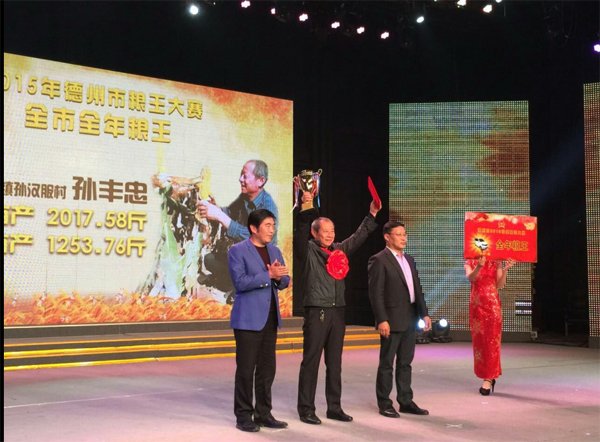今天(4月15日),德州市2015年粮王大赛颁奖仪式暨2016年小麦粮王大赛启动仪式在德州广播电视台演播大厅举行。临邑县翟家镇孙汉服村孙丰忠种植德利农7号亩产2017.58斤,喜获2015年全市玉米粮王,并最终凭借全年粮王获得大奖——汽车一辆!