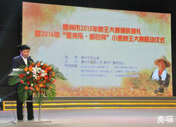 活动最后,德州市邮政公司总经理刘玉华宣布2016年“金来乐·邮政杯”小麦粮王大赛启动。