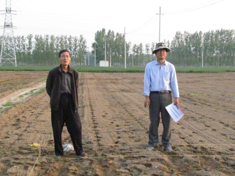 2017年4月23日山农大农学院副院长教授宋宪亮、教授孙学振检查指导公司棉花育种工作,对公司棉花育种安排方案给与修改完善,并在棉花育种田指导播种。